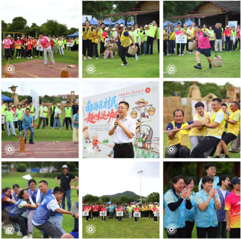 值得一提的是,在本次丰收节活动期间,南海区村民趣味运动会也同步举行。运动会设置了“齐心协力”挑粮接力、“颗粒归仓”趣味插秧、“力拔山河”拔河等项目,现场欢声笑语不断,参赛者与观众共同沉浸在节日的喜悦氛围中。这些项目不仅展现了佛山村民“团结协作、奋勇争先”的精神风貌,也加深了彼此之间的情感联结,进一步增强了乡村社区的凝聚力,更通过“体育+乡村”的模式,有效激活了乡村文化活力。